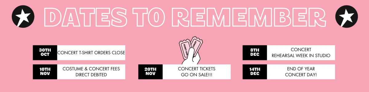 In terms of attendance, it is very important that students do not miss any of their scheduled classes between now and concert time so they can spend their rehearsal time together to perform their routines, feel confident and look amazing! If for any reason your child will miss a number of their regular classes in Term 4, we ask that you contact reception to let us know in advance.