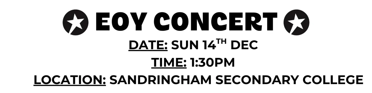 Our End of Year Concert will be held on SUNDAY 14th DECEMBER at 1:30pm.